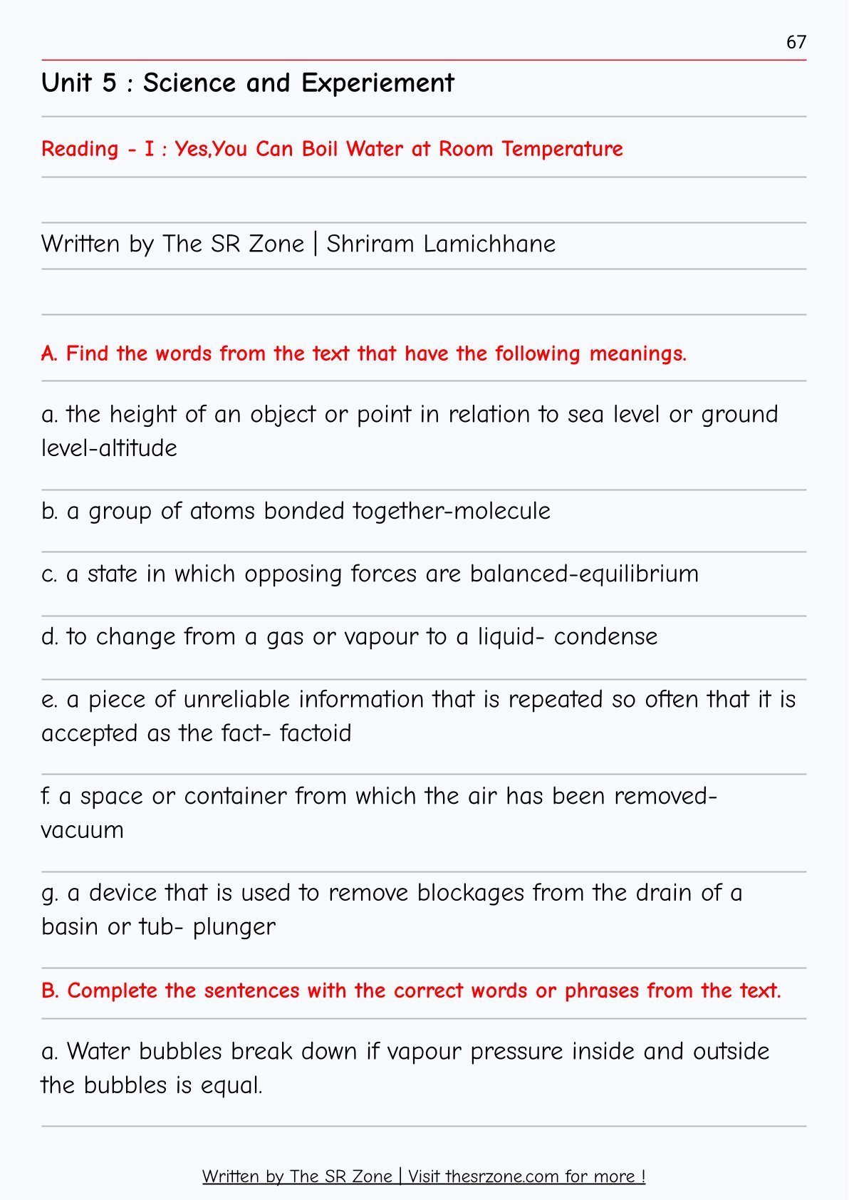 Class 10 English Unit 5 Reading I & Reading II Exercise - Science and Experiment